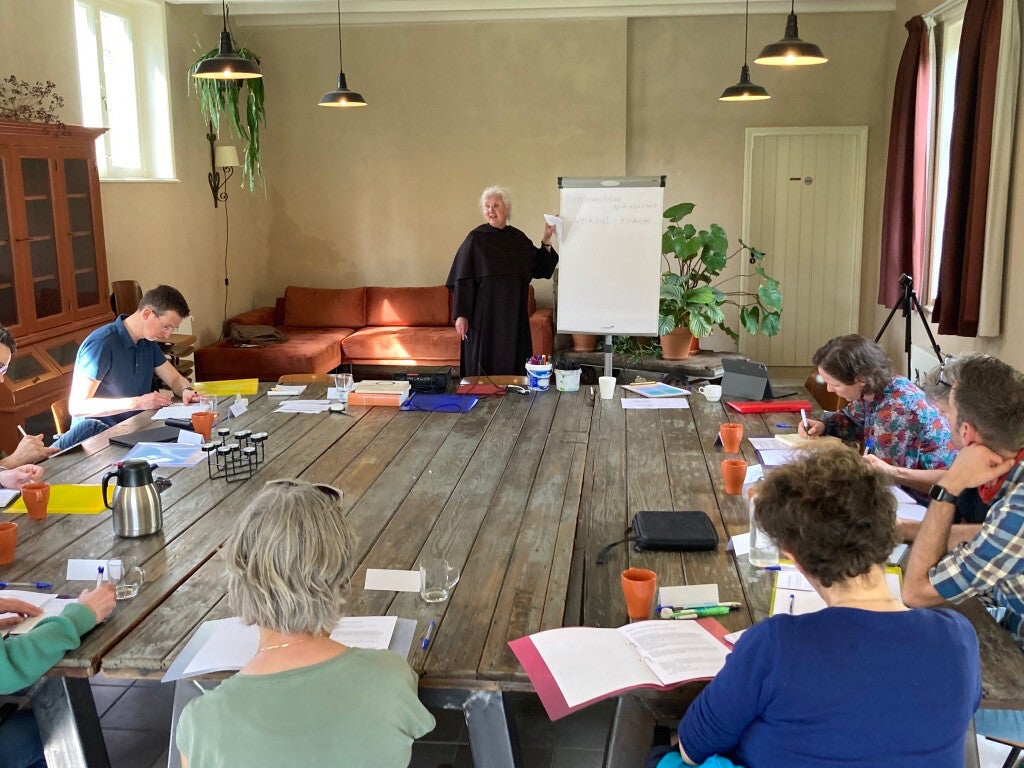 Je eet en slaapt op het klooster en volgt het ritme van de getijdengebeden. Daarnaast krijg je 8 trainingsblokken, verdeeld over 4 dagdelen.